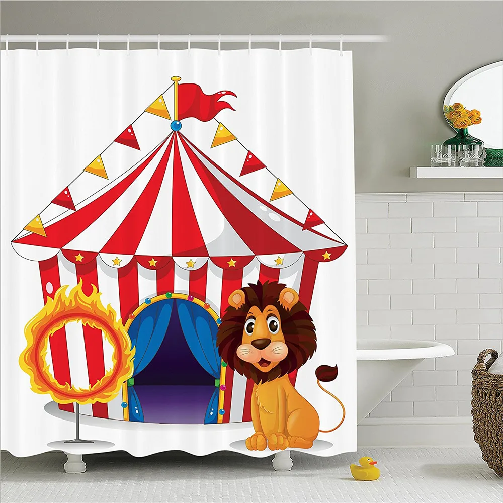 Circus Decor Shower Curtain Set Lion And A Fire Ring In Front Of