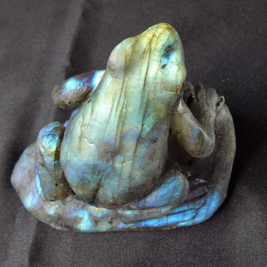 Flashy Rainbow Labradorite Hand Carved Crystal Frog Sculpture Home