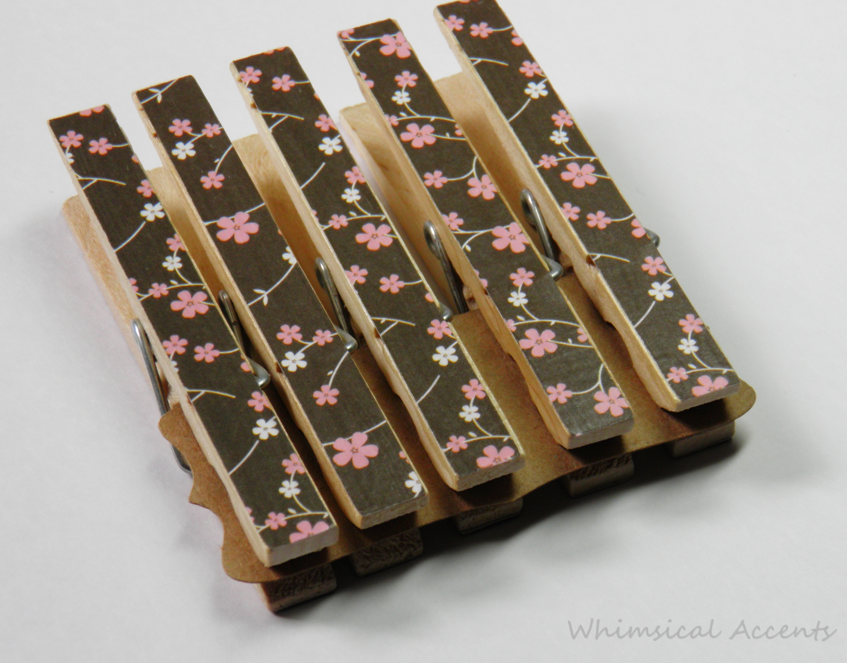 Cherry Blossoms Brown Decorative Clothespins On Luulla
