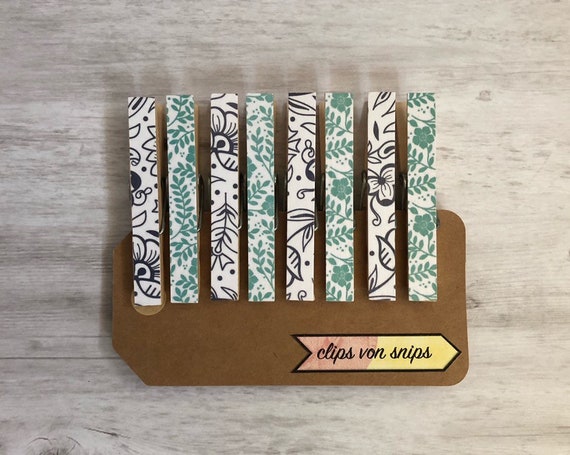 Set Of 8 Teal And Blue Floral Decorative Clothespins Etsy