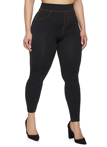 Plus Size Decorative Stitch Denim Knit Leggings Rainbow