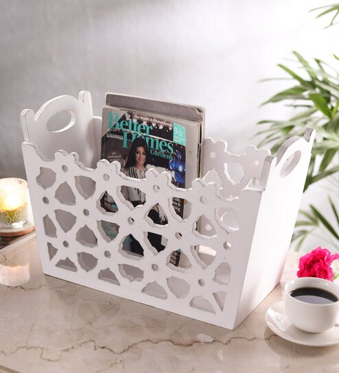 Buy White Engineered Wood Decorative Hand Crafted Magazine Holder
