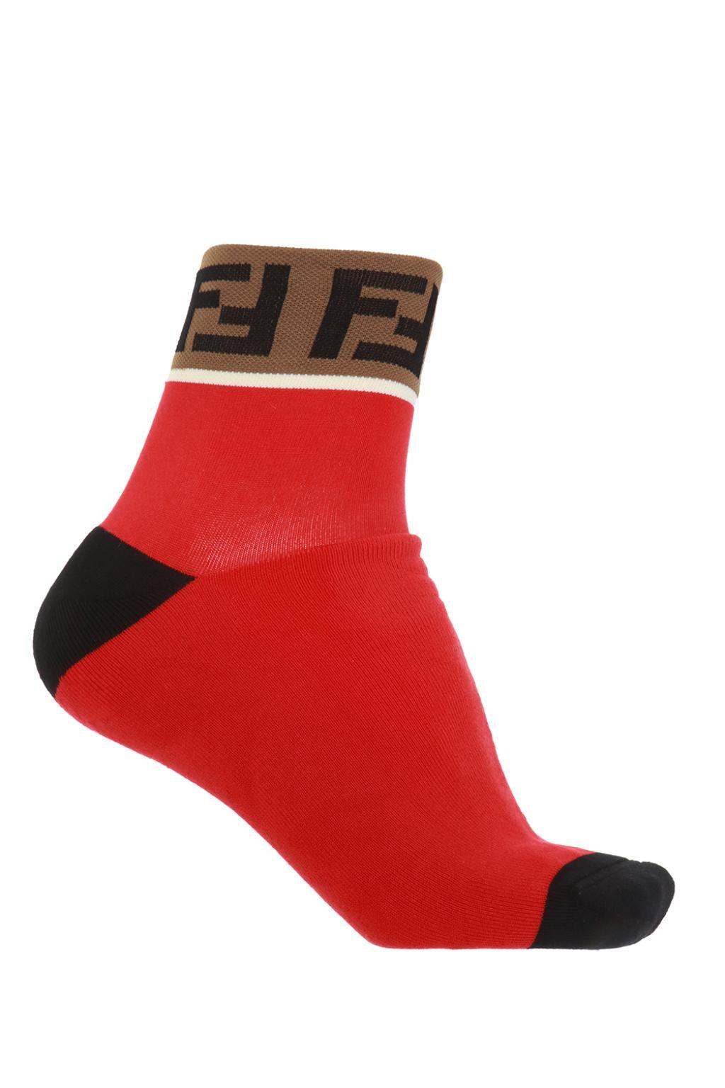 Fendi Cotton Decorative Cuff Socks In Red For Men Lyst