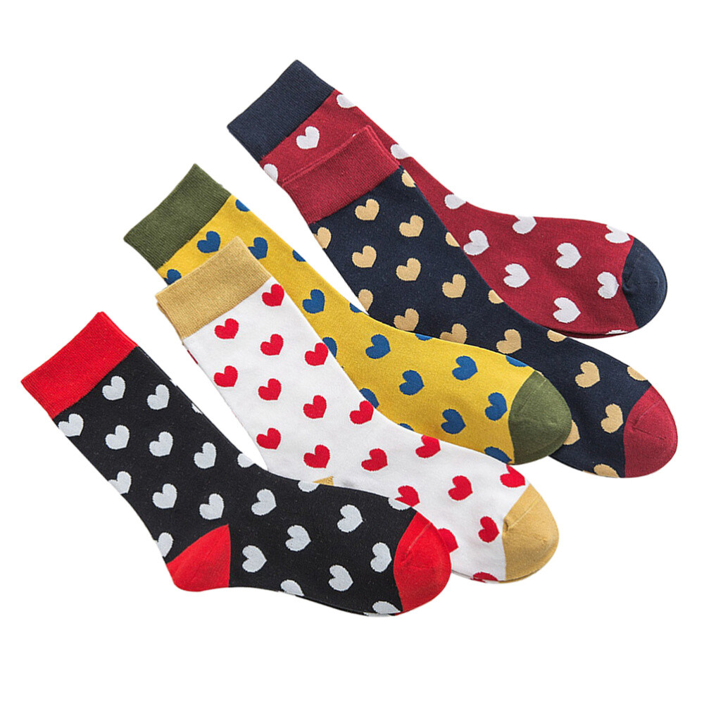 5pcs Cotton Socks Winter Warm Decorative Heart Printed Stockings