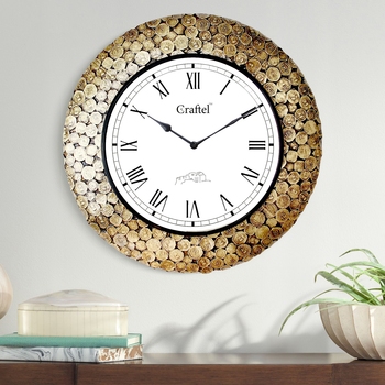 18 Antique Coin Studded Brass Metal Decorative Wall Clock For