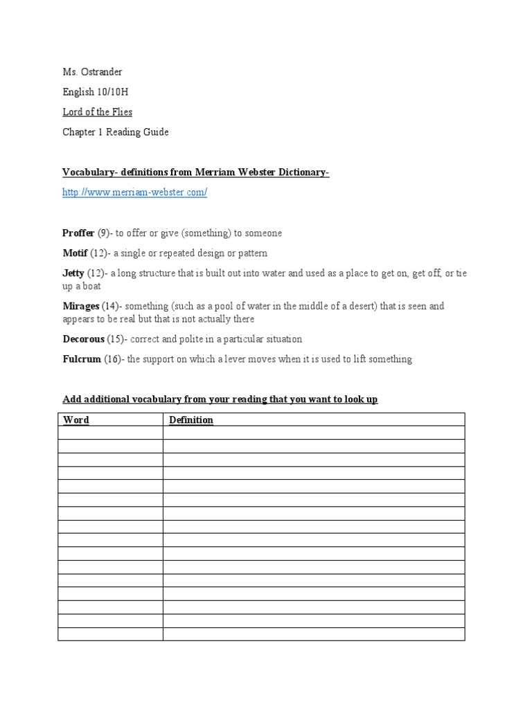 Vocabulary Lord Of The Flies Chapter 1 1 Efflorescence Flowering