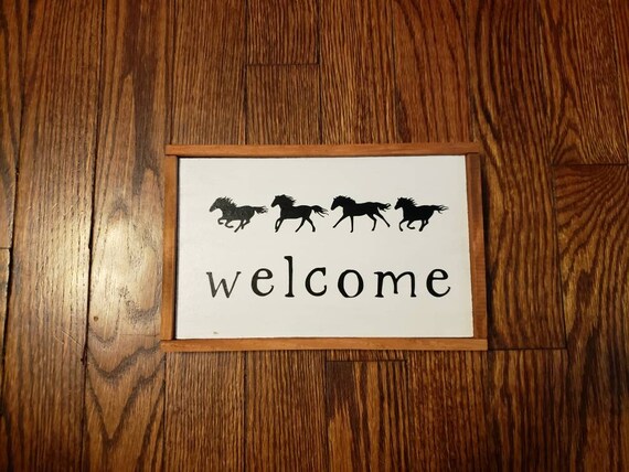 Welcome Running Horses Sign Equestrian Home Decor Horse Etsy