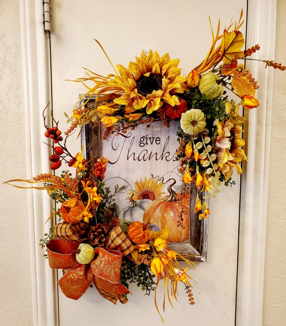 Give Thanks Frame Fall Wall Hanging Autumn Door Hanger Fall Etsy