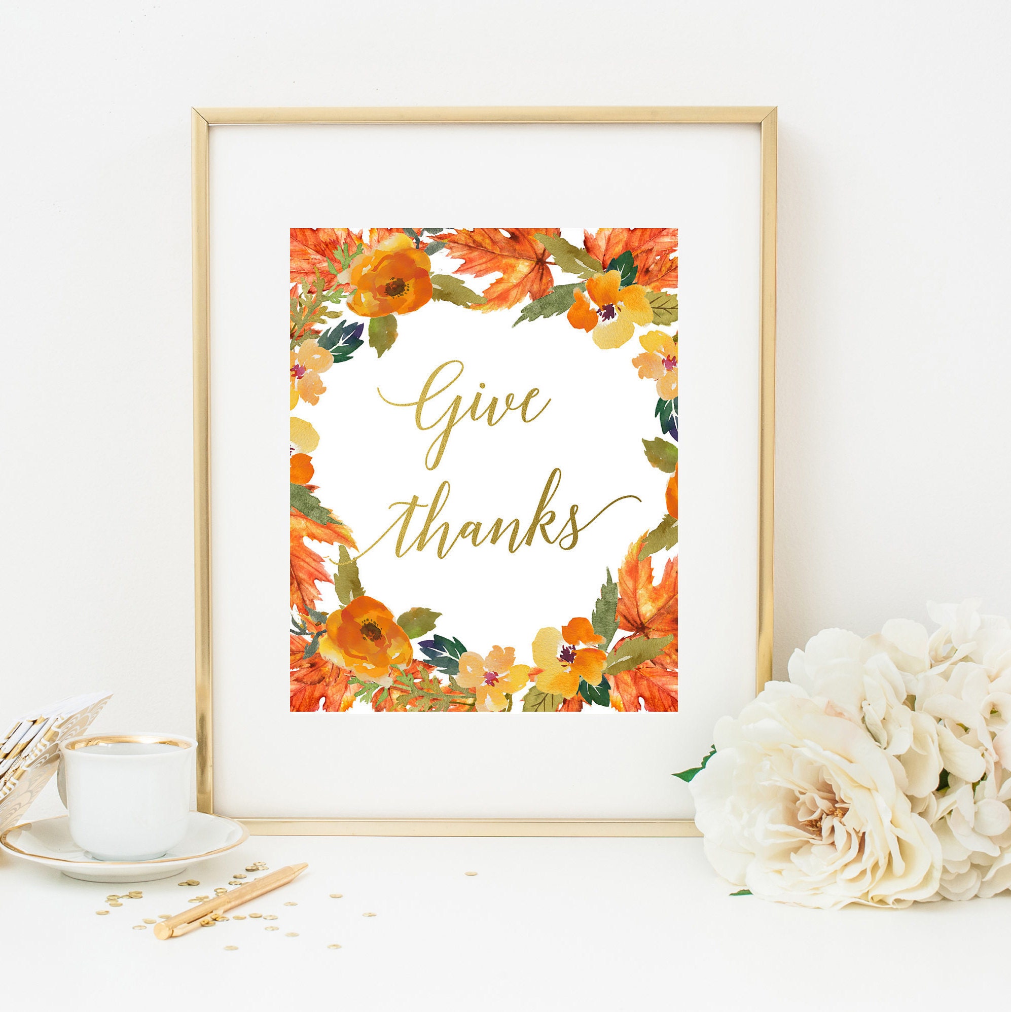 Give Thanks Printable Wall Art Fall Wall Art Give Thanks Floral