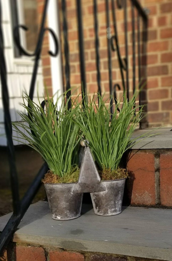Faux Grass Planter Artificial Grass Galvanized Metal Etsy