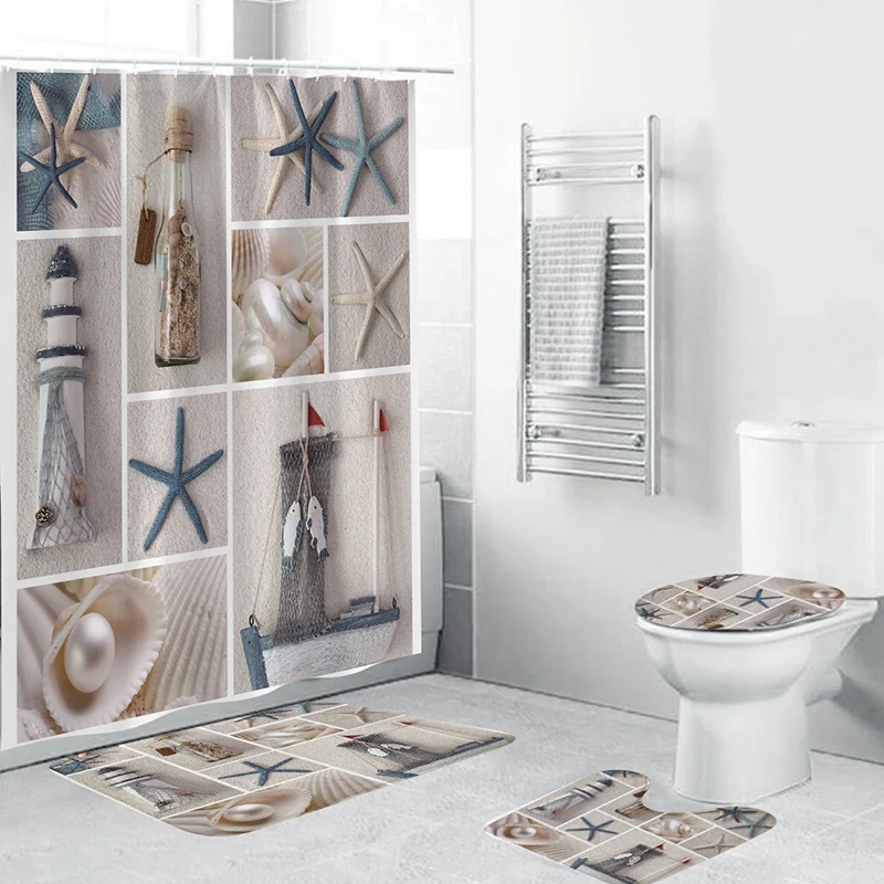 4pcs Home Bathroom Decor Set Starfish And Fishing Nets Pattern