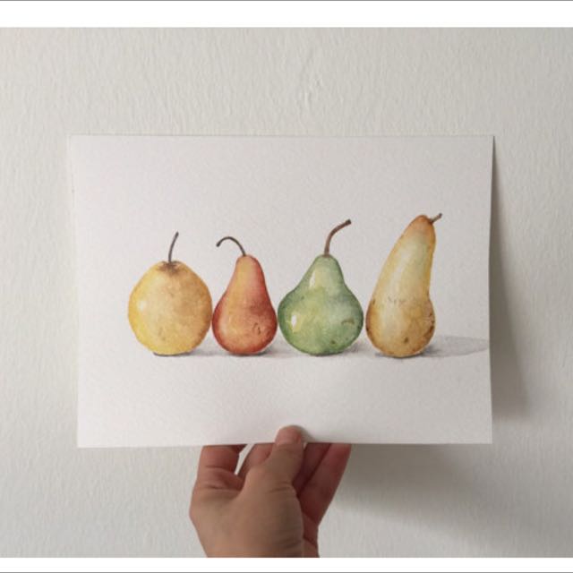 Pear Wall Decor Original Watercolor Painting Fruit Art Kitchen