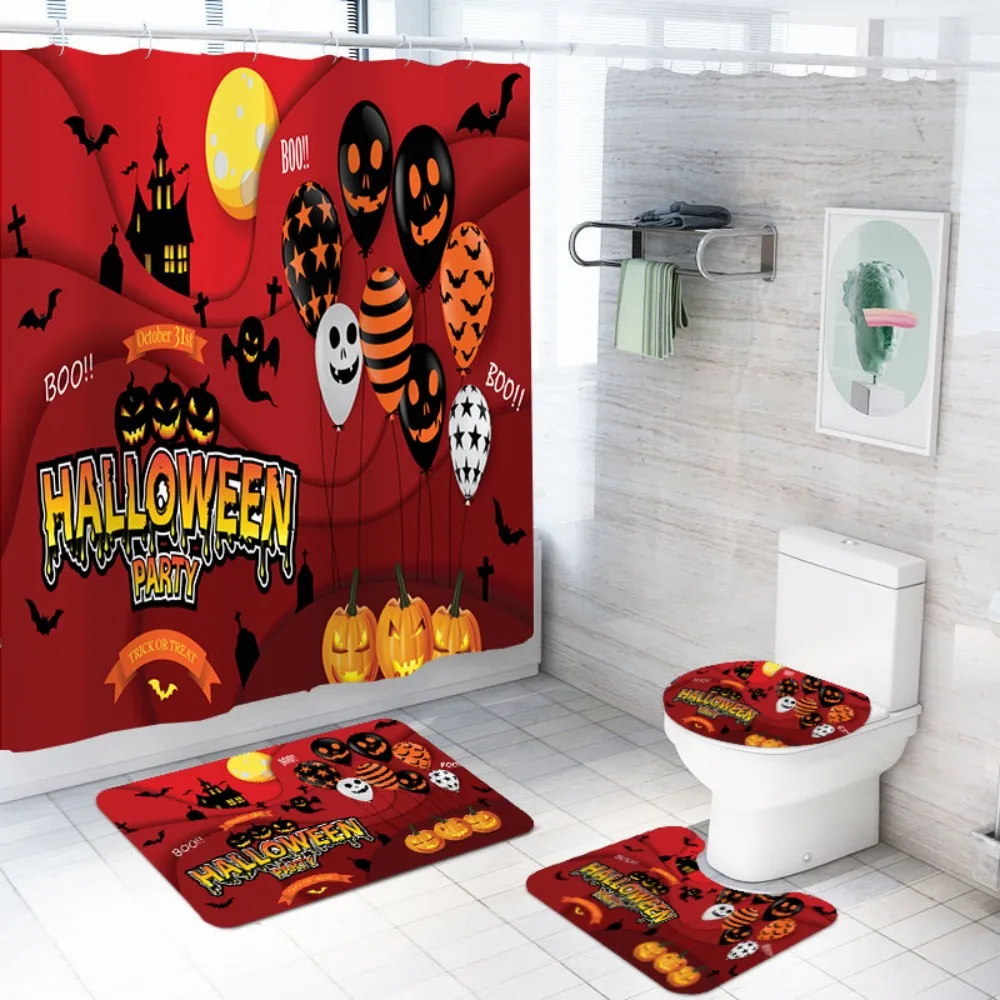 1 3 4pcs New Fashion Halloween Pumpkin Shower Curtain Bathroom