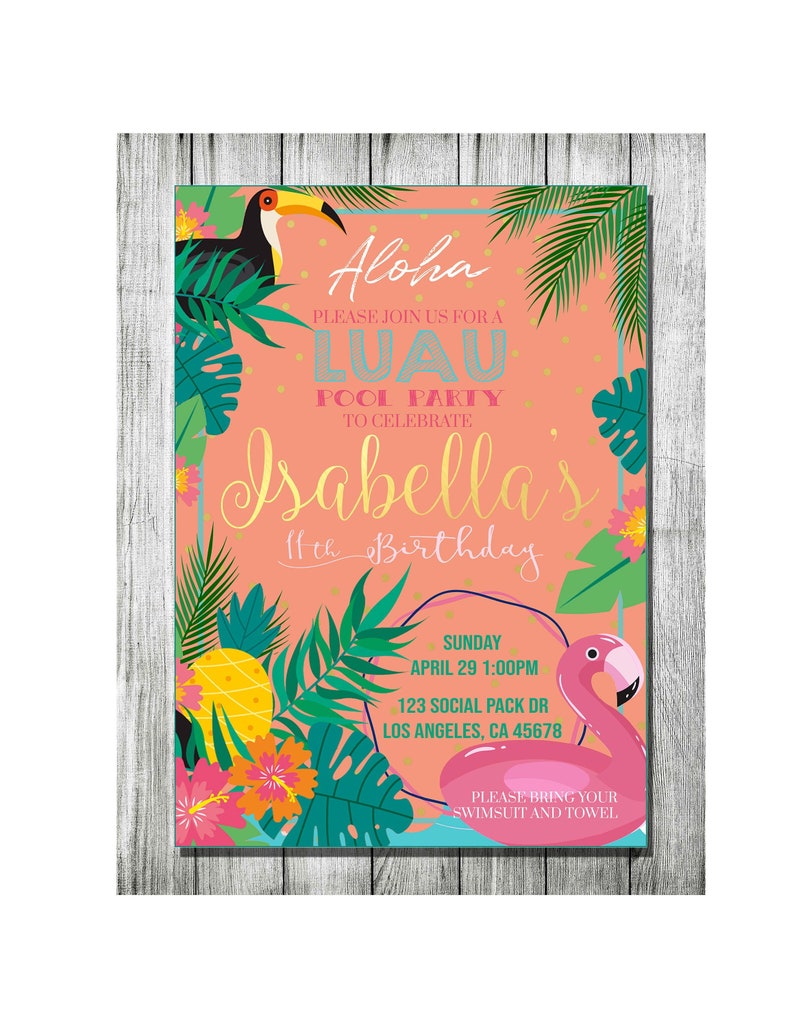 Personalized Hawaiian Luau Theme Birthday Invitation Etsy