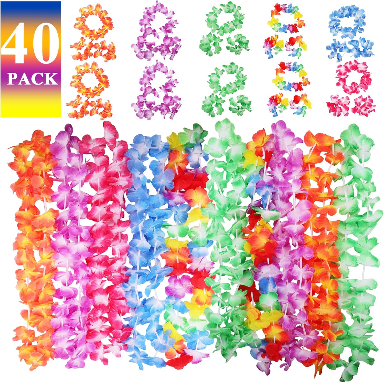 Amazon Com Hoosun Hawaiian Leis 40 Pack Flowers Necklaces