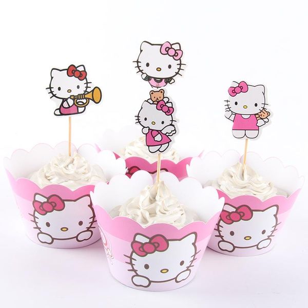 2020 Pink Hello Kitty Cartoon Paper Cupcake Wrappers Topper For