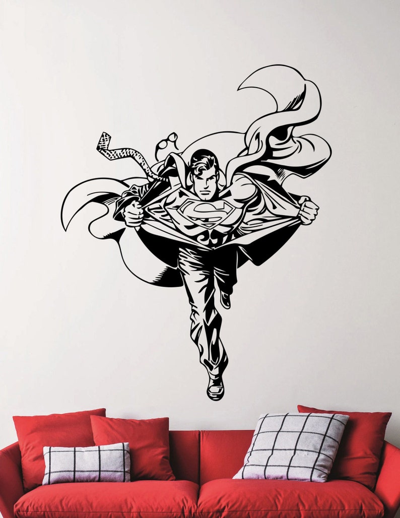 Superman Wall Decal Superhero Sticker Home Decorations Living Etsy