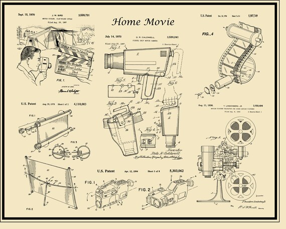 Home Theatre Decor Patent Print Film Wall Decor Blueprint Etsy