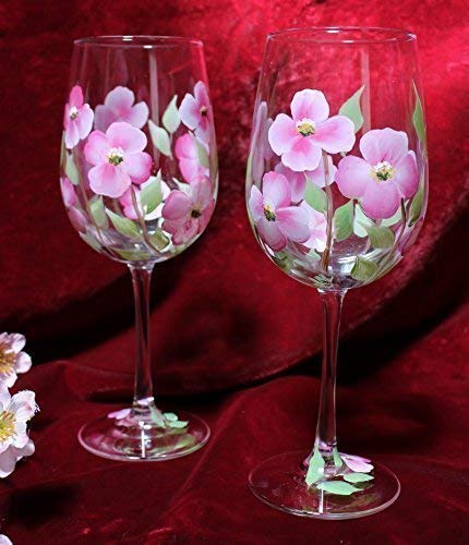 Amazon Com Hand Painted Wine Glasses Dogwood Pink Set Of 2