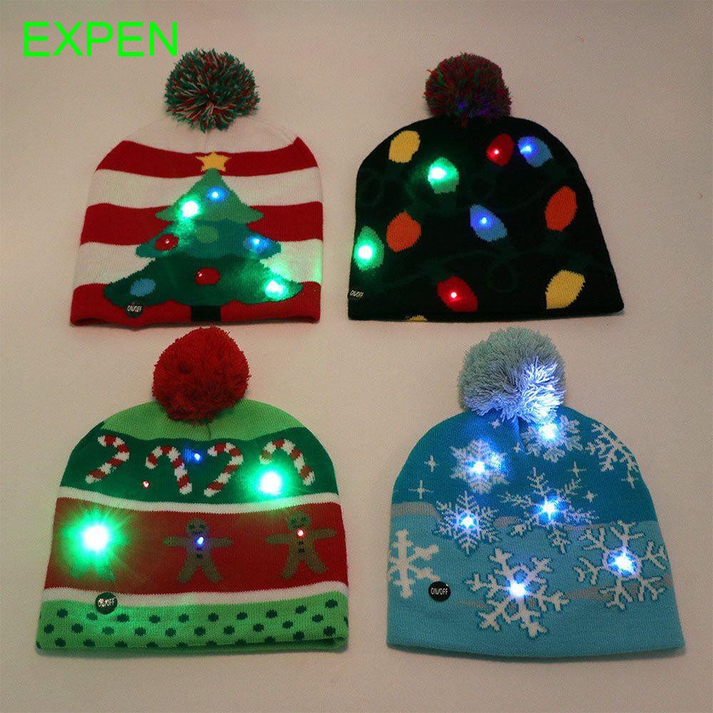 Led Light Knitted Hat Light Up Christmas Tree Snowflake Hat