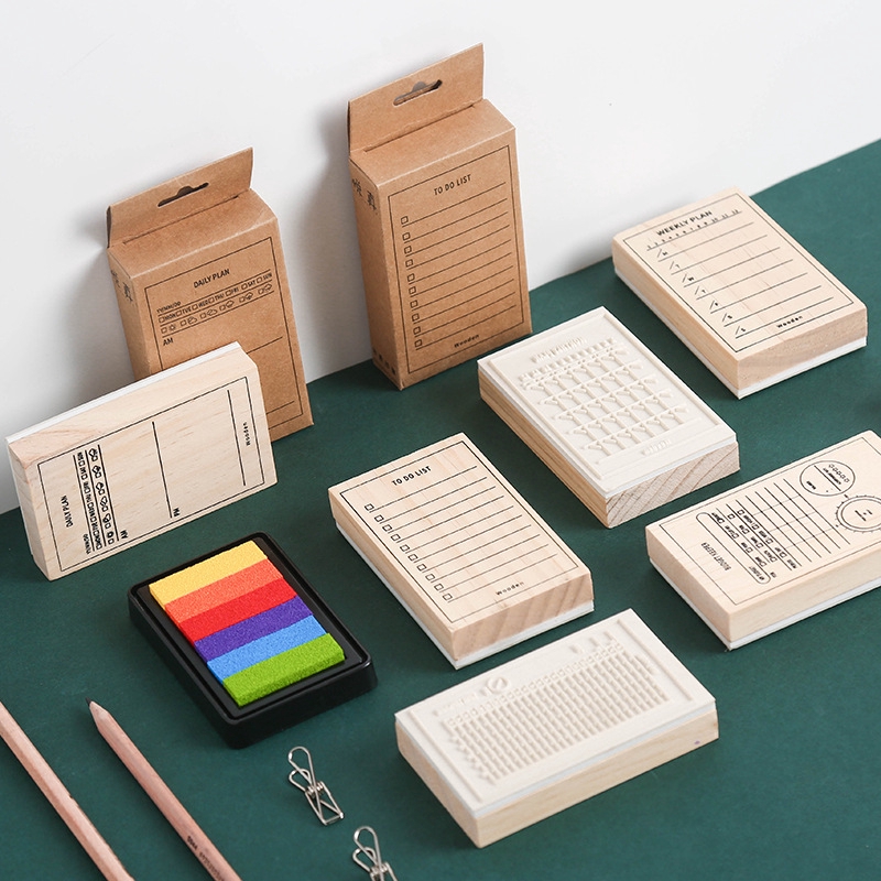 Daily Weekly Plan List Decoration Stamp Vintage Wooden Rubber
