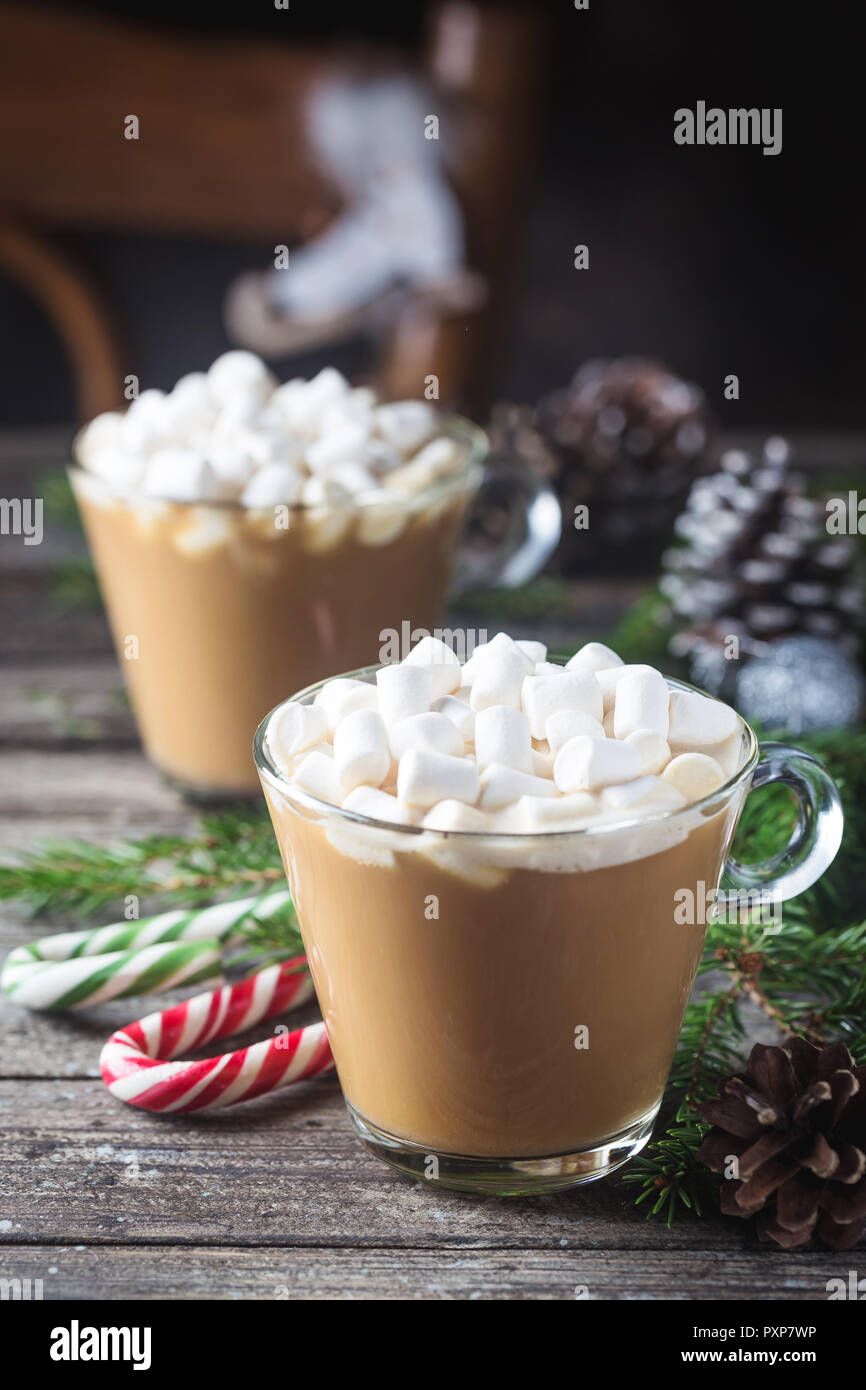 Hot Chocolate With Marshmallow Candy And Christmas Decorations
