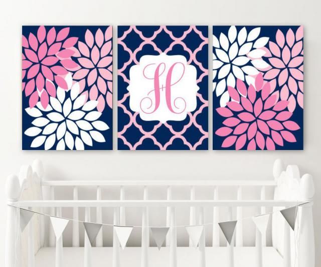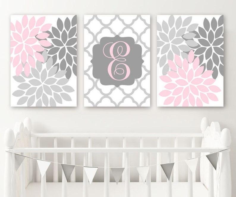 Pink Gray Nursery Decor Pink Monogram Wall Art Baby Girl Etsy