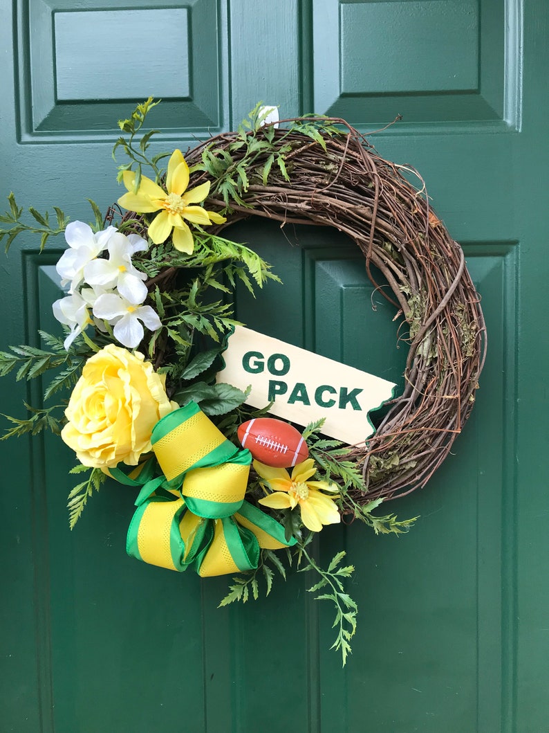 Green And Gold Packers Wreath Green Bay Packers Fan Wreath Nfl Etsy