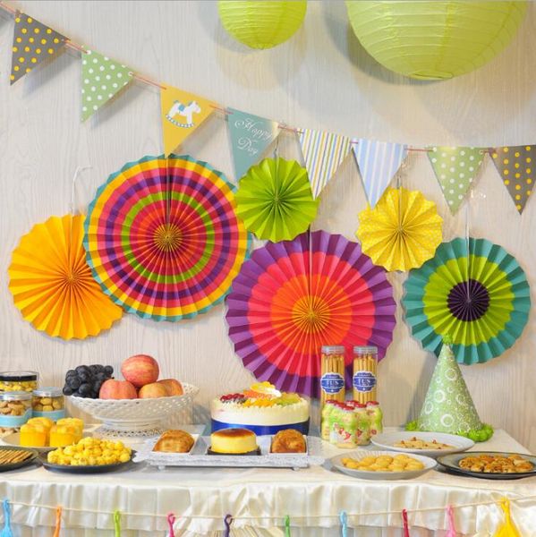 Rainbow Paper Hanging Fans Decorations Round Party Garlands Decor