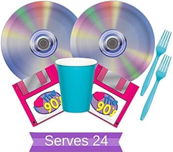 Buy 90s Party Supplies Cd Plates Cups Napkins And Forks For 24
