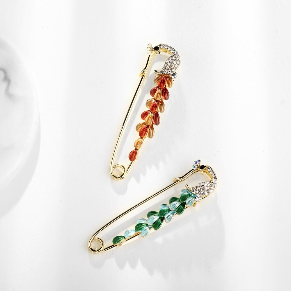 Opal Charm Pins For Women Green Peacock Pearl Brooch Pins Dress