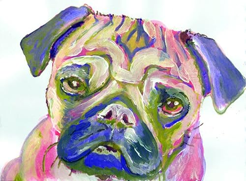 Amazon Com Pink Blue Pug Art Print Colorful Pug Painting Pug