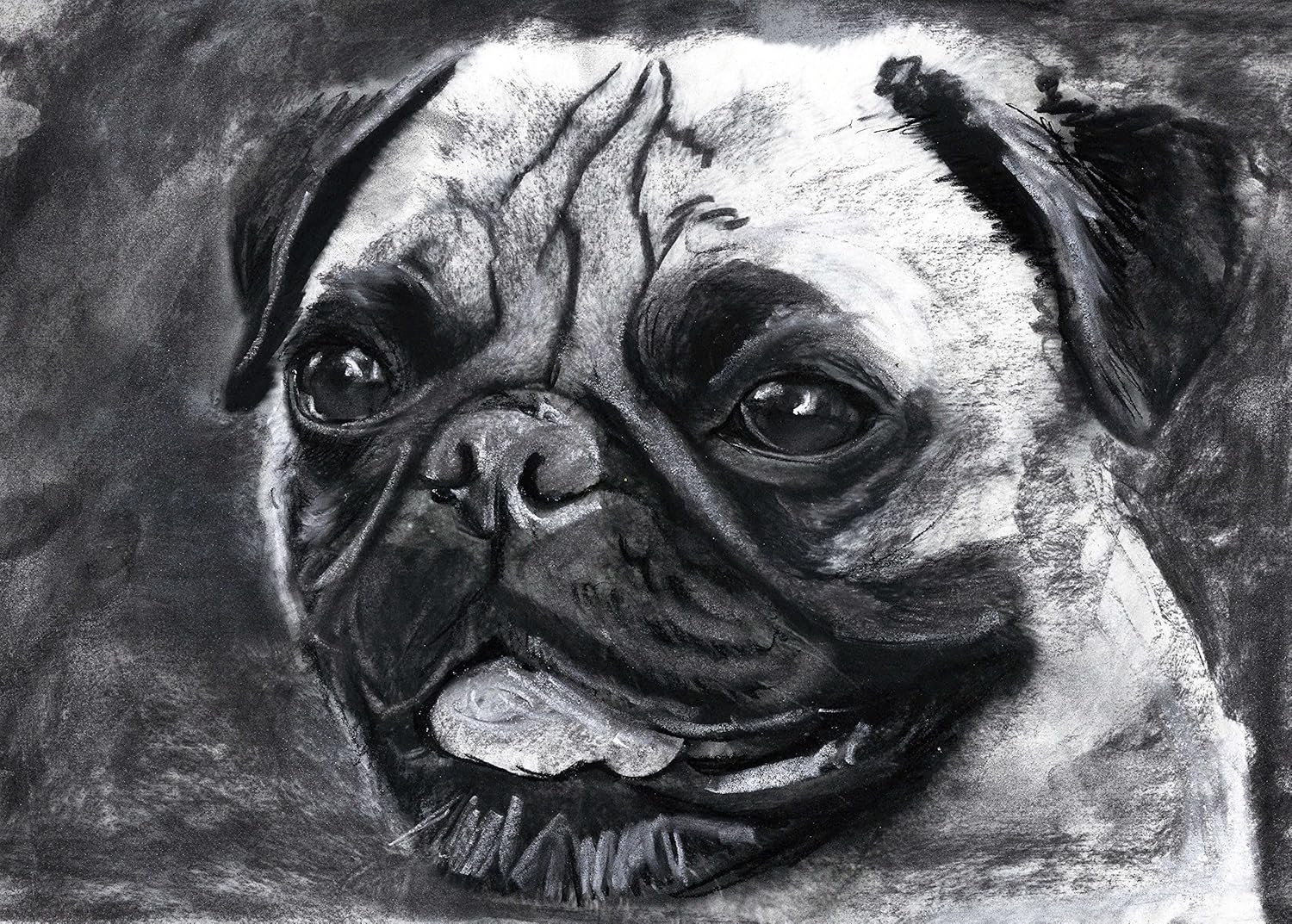 Amazon Com Unique Sad Pug Art Print Black And White Pug Painting