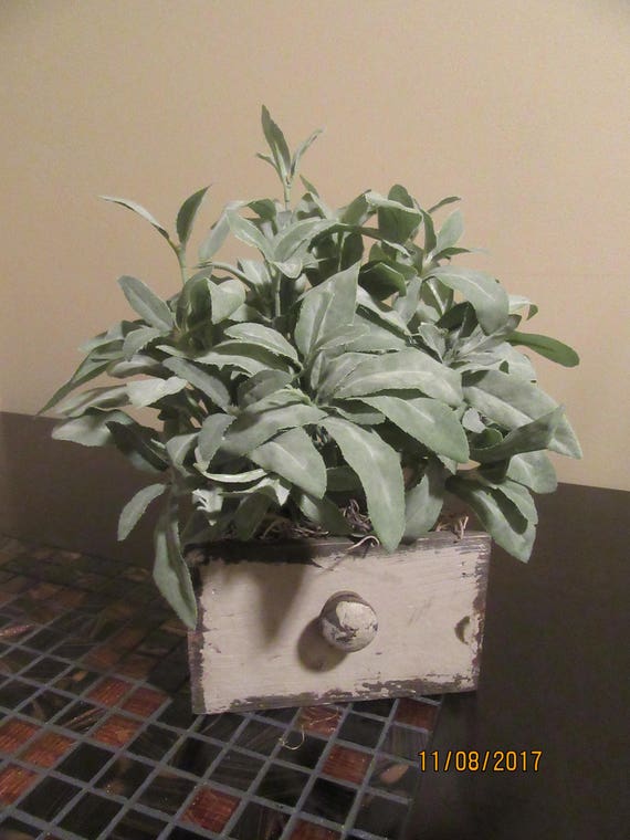 Sage Bush In Distressed White Wooden Drawer Primitive Decor Etsy