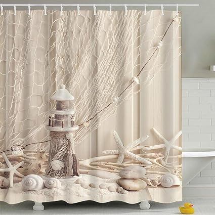 Nautical Seashell Decor Shower Curtain Fabric Coastal Sea Shell