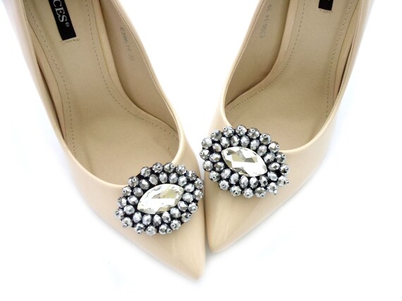 Grey Stones Shoe Clips Brides Shoe Clips Decorations Gray Etsy