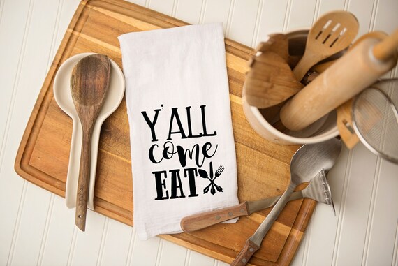 Y All Come Eat Tea Towel Southern Home Decor Kitchen Decor Etsy