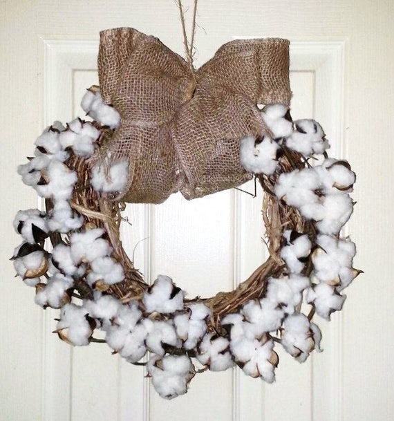 Cotton Wreath Southern Home Decor Shabby Chic Wreath Etsy