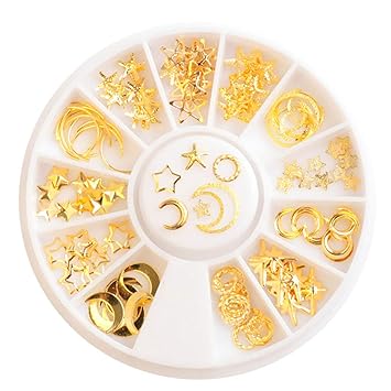 Nails Art Gold Stars Moon Studs Metallic 3d Decorations Wheels