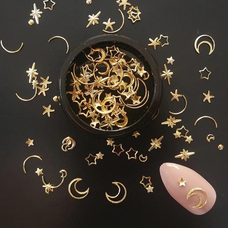 1box 3d Nail Decorations Gold Star Moon Metal Rivets Mixed Charm