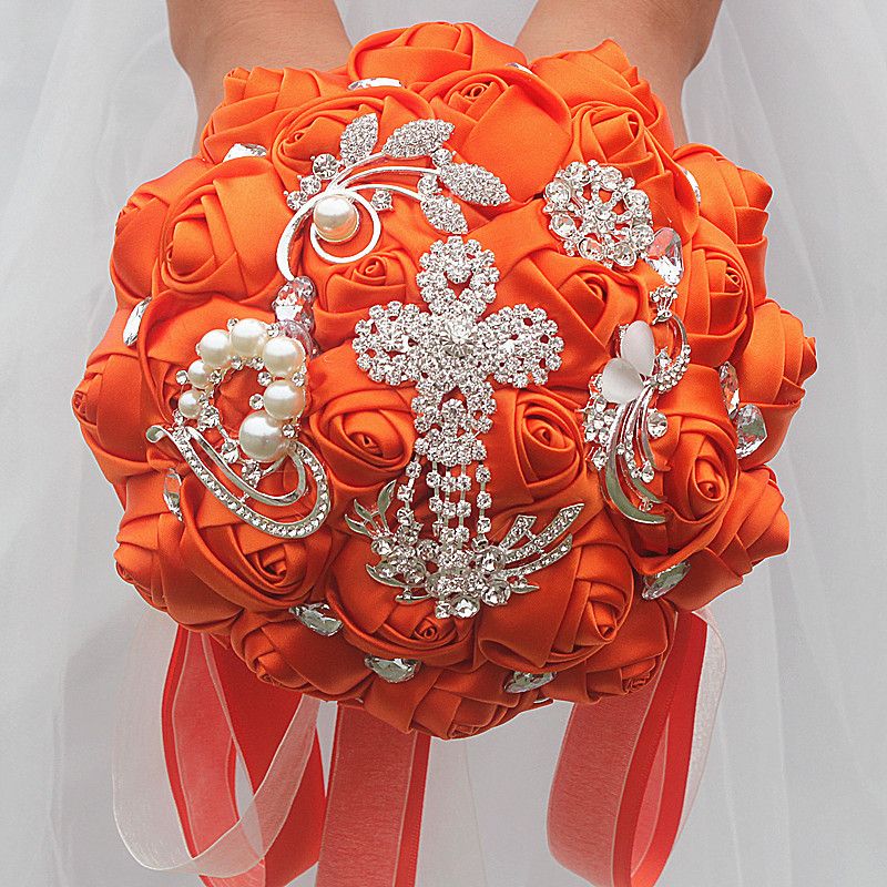 Orange Satin Wedding Flowers Decorations Crystal Pearls Bridal