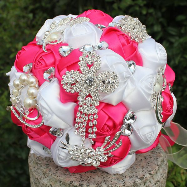 Pink White Satin Wedding Flowers Decorations Crystal Pearls Bridal