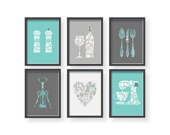 Gray Teal Wall Art Canvas Abstract Pictures For Dining Room Etsy