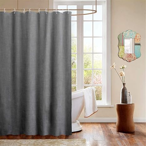Thinkbighome Fabric Shower Curtain Linen Look Waterproof