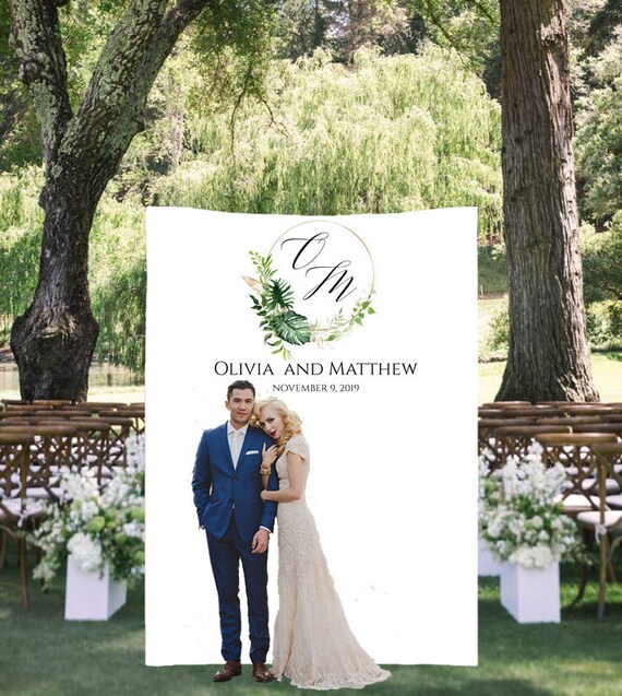 Monogram Backdrop Tropical Wedding Backdrop Dessert Table Decor