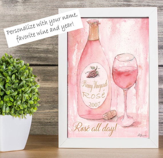 Rose All Day Wine Wall Art For Rose Wine Lover Blush Pink Etsy