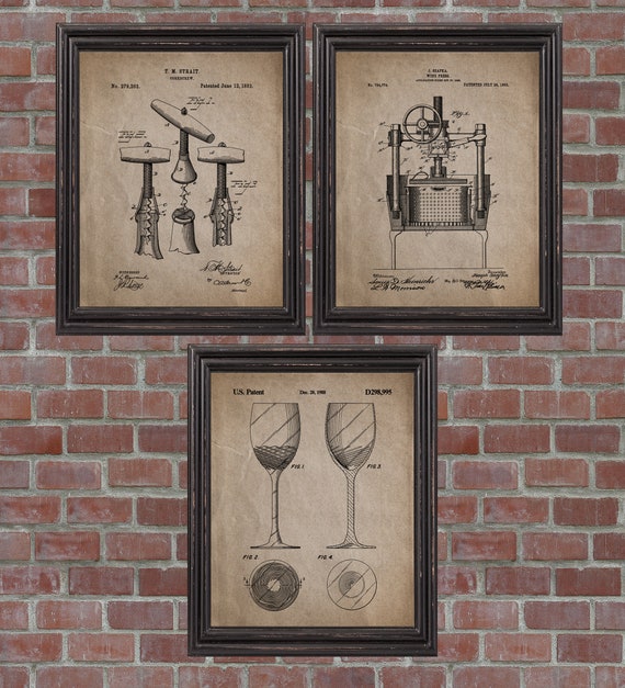 Wine Patent Print Set Of 3 Wine Glasseswine Wall Decor Etsy