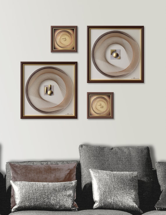 Zen Wall Art Set In Brown Gold Abstract 3d String Art Etsy