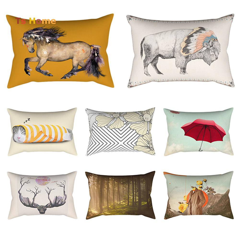 Horse Floral Animal Print Pillow Case Throw Cushion Cover