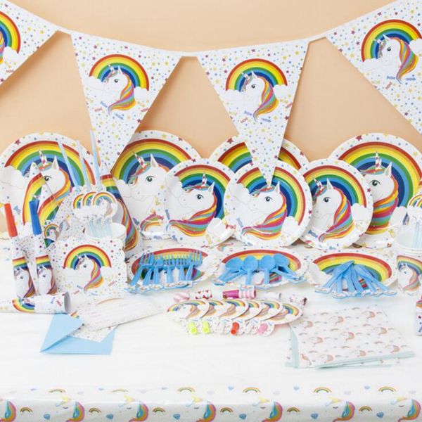 Unicorn Kids Birthday Party Decoration Set Cups Napkin Hats